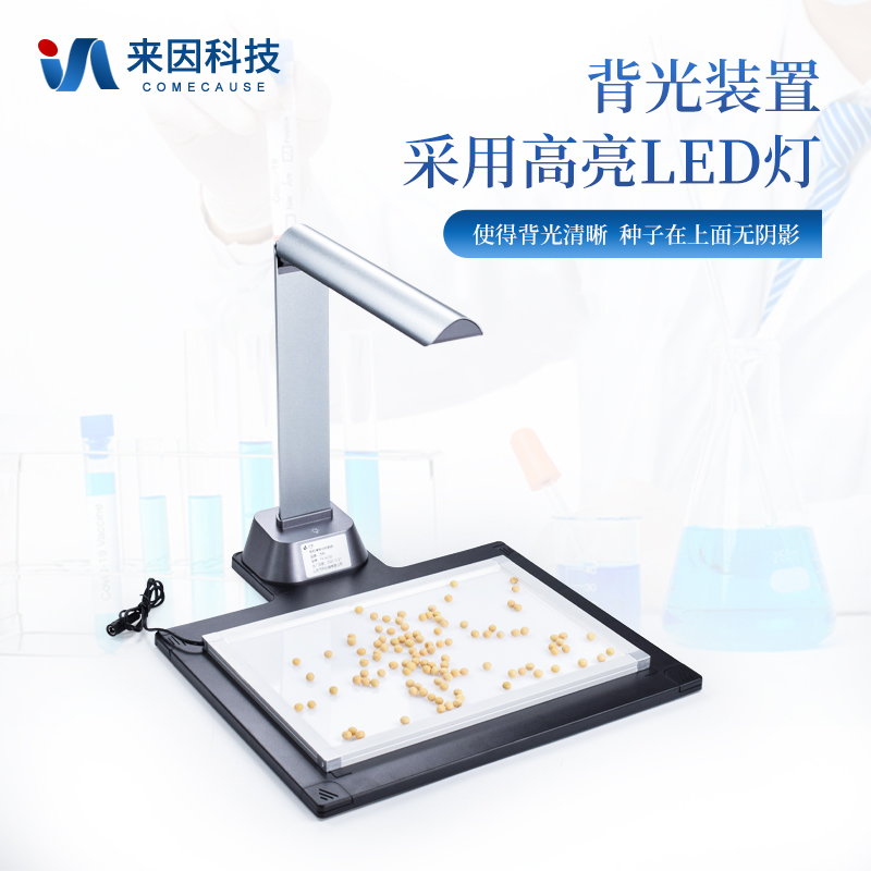 智能考种系统由1600万高拍仪和背光装置组成。背光装置采用的是高亮LED灯,外边框使用铝合金材质制成。软件采用先进的图像处理技术,根据距离变换原理、形态学、凸包检测等技术综合设计的一款嵌入式软件。该设备主要应用在农业领域的田间作物测产及考种等方面,通过高拍仪拍摄的照片,软件自动计算种子数量,种子的面积、周长、长度、宽度、长宽比等数据,根据天平所得的重量与种子的数量自动计算出千粒重;以列表和图形的方式输出结果,便于用户查看与分析研究。本产品也可以手动对作物种子数量修正以确保计数精度、对数据进行保存,并且可以查看数据报表,最后可以将数据以Excel格式导出。